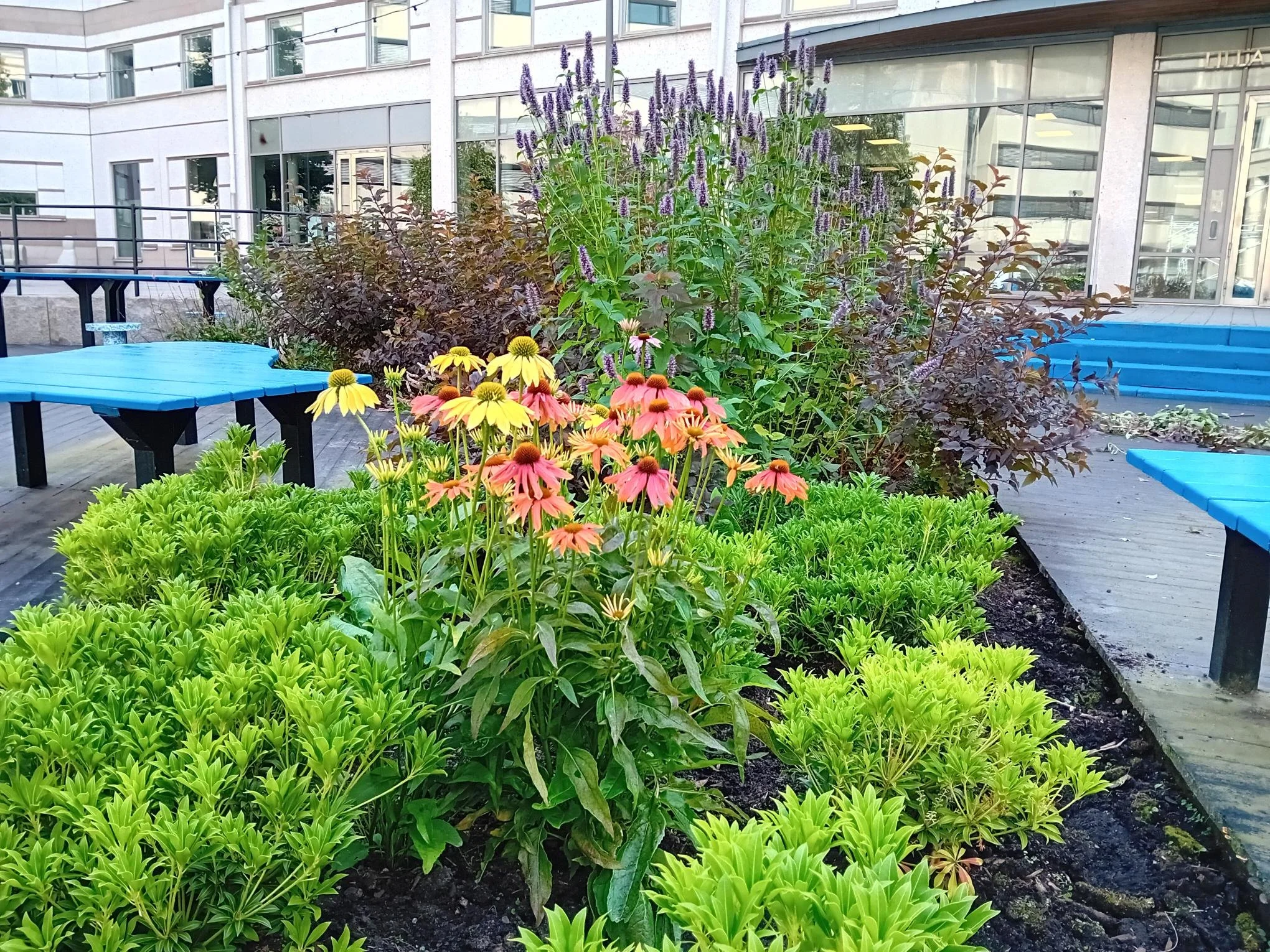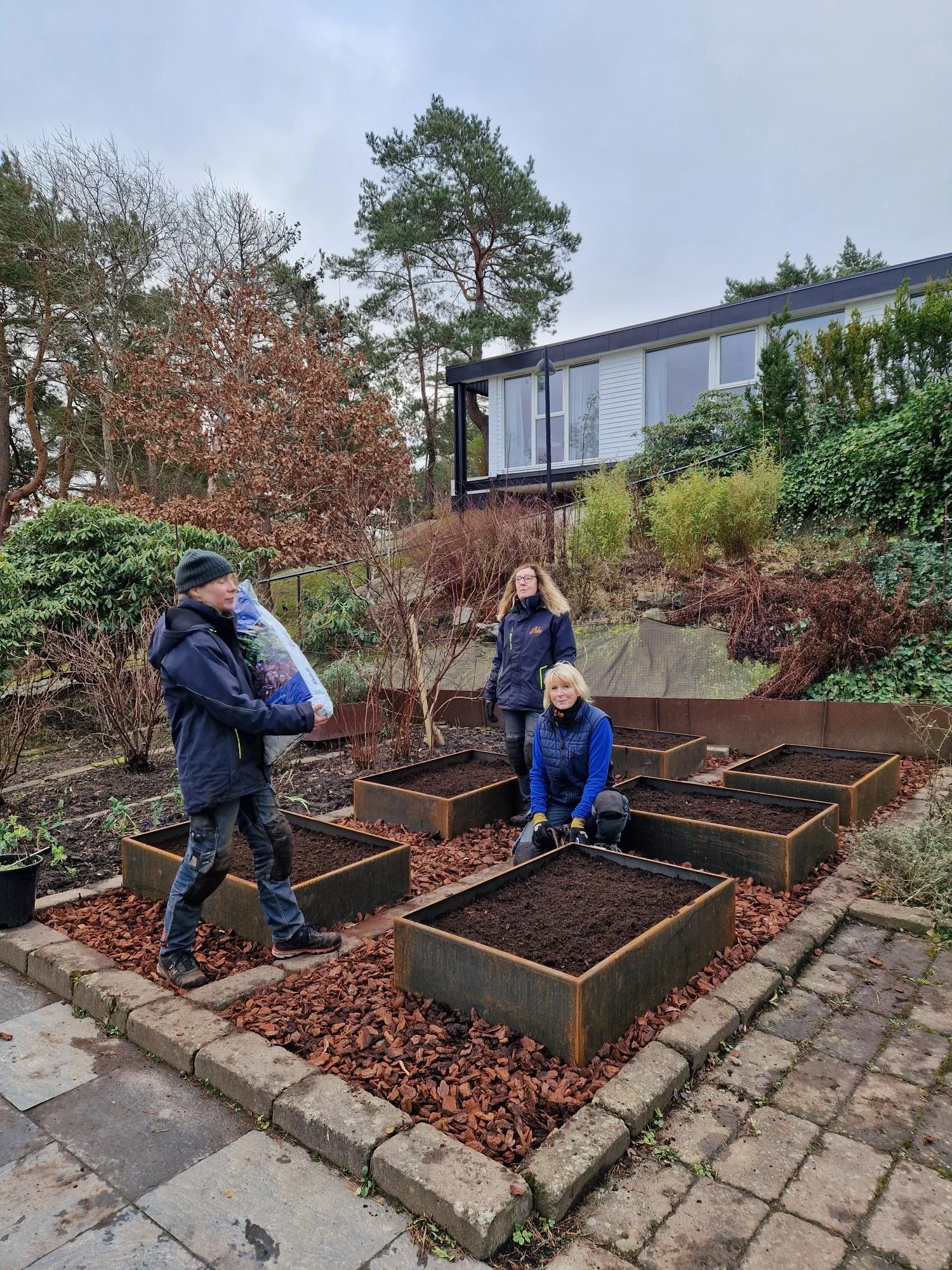 Vi har skötselkontrakt med ett antal bostadsrättsföreningar. Det innebär att vi sköter allt underhåll av det gröna under hela säsongen. Från beskärning av buskar och träd, ogräsrensning, häckklippning, gödning och kompletteringar i växtmaterialet.